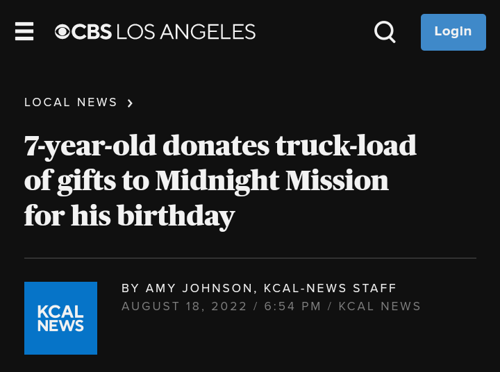 Watch “7-year-old donates a box truck of supplies to Midnight Mission for his birthday” on YouTube