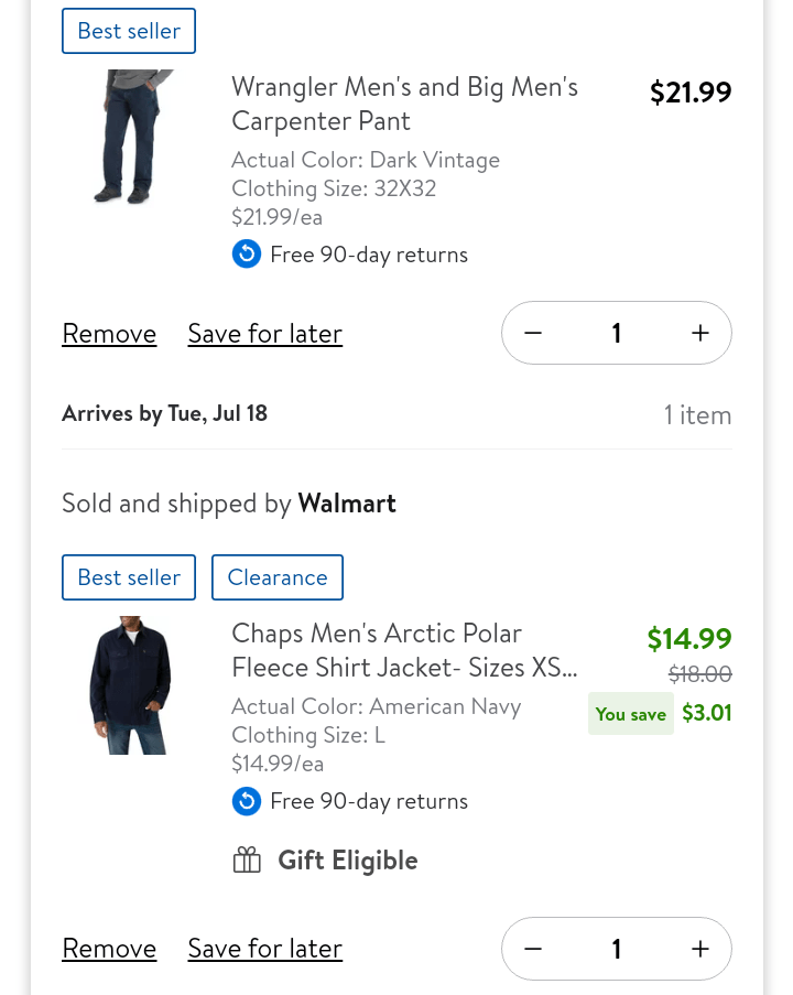 WALMART: 7/15/2023 Delivery (DIRECT DEPOSIT)
