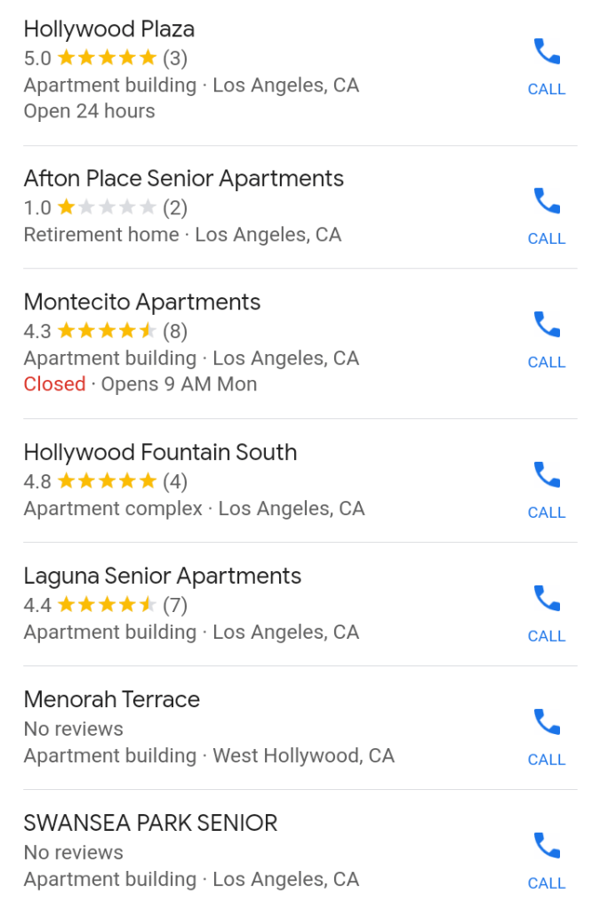 HOLLYWOOD, CA: ALL Senior Apartment Renters ($300,000 leaser per residence)