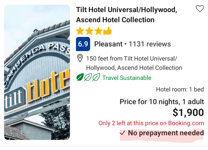 TILT HOTEL UNIVERSAL/HOLLYWOOD: 10 Day Stay Booked & Paid – $700,000 DIRECT DEPOSIT (check-in after 1 PM PST)